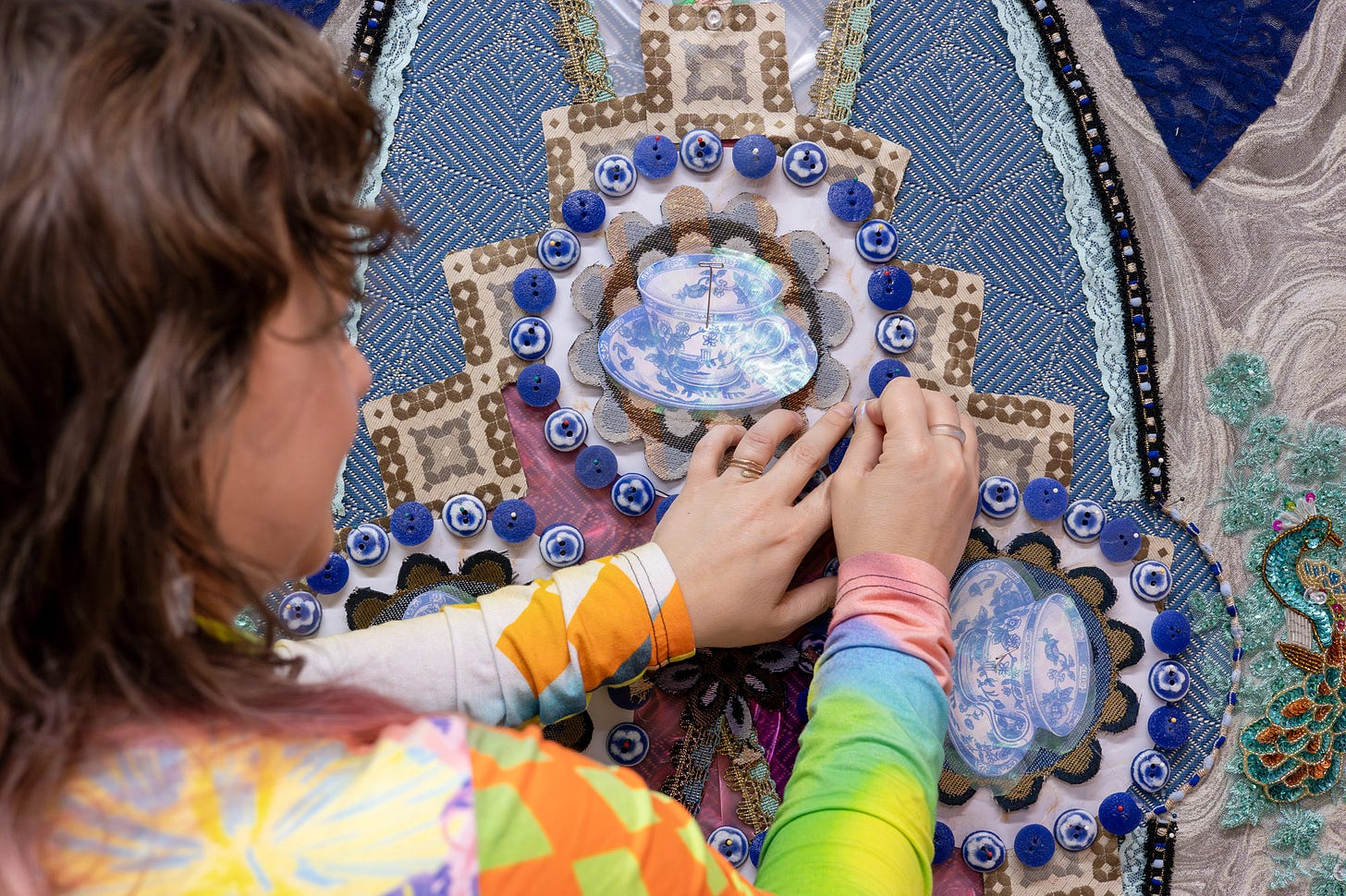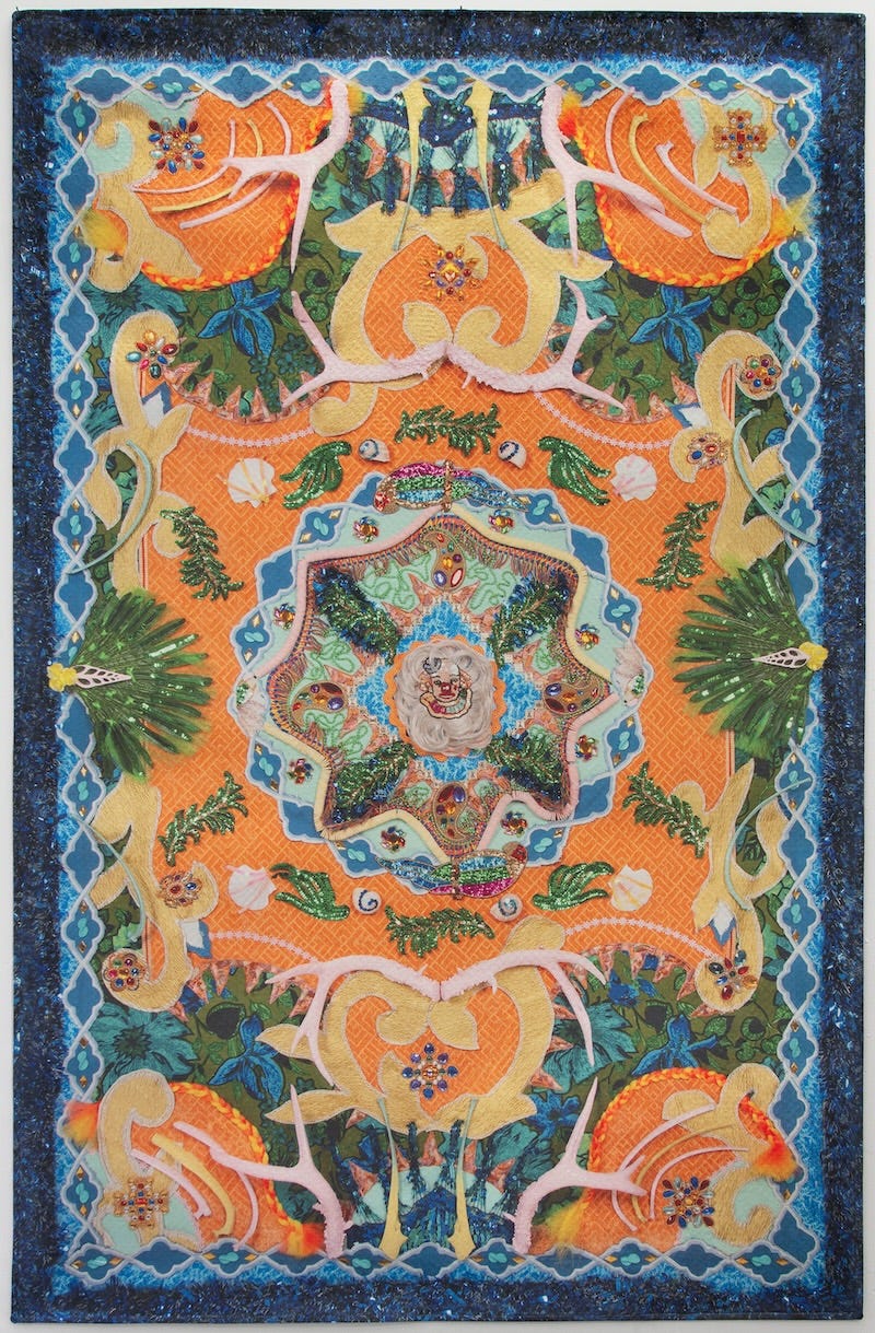 But I think it also comes naturally to me, maybe, as someone who aggregates materials to build their art work. My rugs, in a way, just become another form of curating—finding and selecting specific objects and textiles to put together as a larger whole.